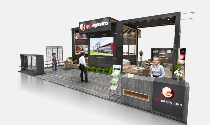 契合GGM的品牌形象和產(chǎn)品特性,采用矩形結(jié)構(gòu),再搭配燈具燈光的效果,襯托出展位大氣、豪華的氛圍,突出一種簡(jiǎn)約、時(shí)尚的品味。