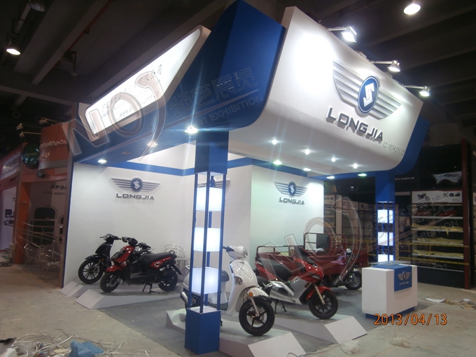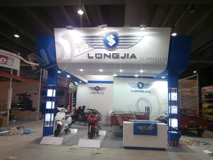契合龍嘉摩托的品牌形象和產品特性,采用框型結構,再搭配燈具燈光的效果,襯托出展位超前、簡約的氛圍,突出一種融合、個性的時尚品味。