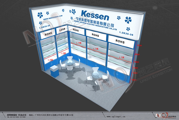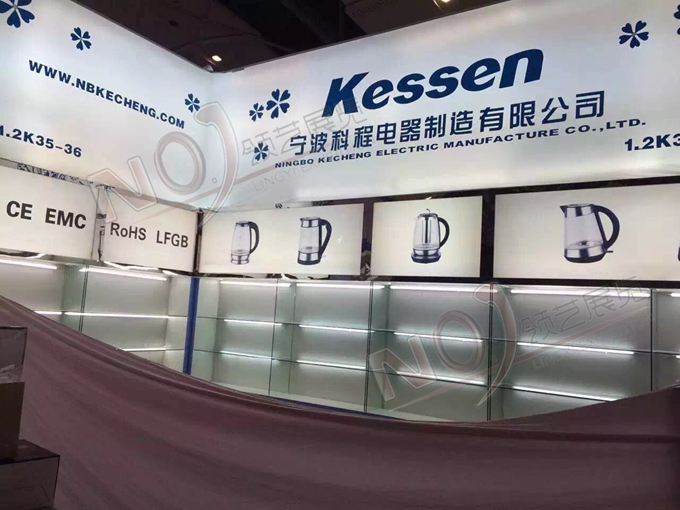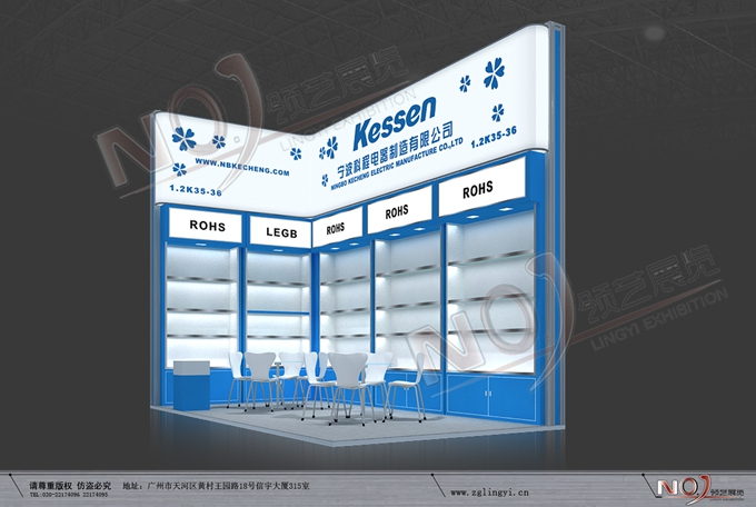 契合的科程品牌形象和產(chǎn)品特性,采用矩形結(jié)構(gòu),再搭配燈具燈光的效果,襯托出展位時尚、簡約的氛圍,突出一種現(xiàn)代、活力的時尚品味。