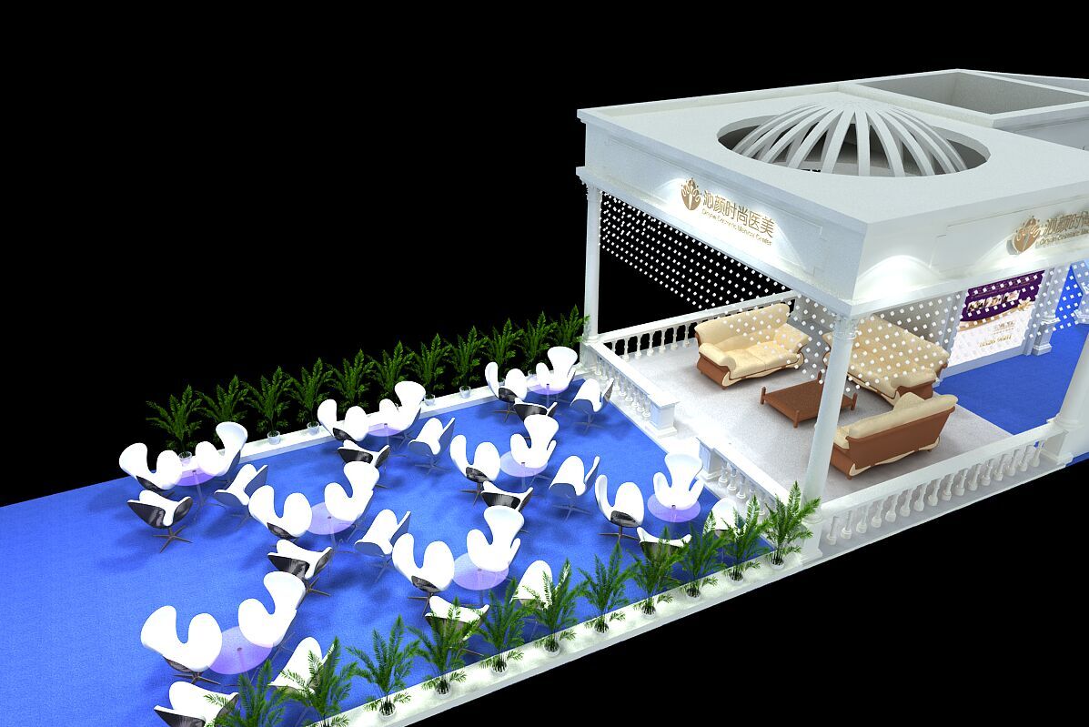 契合沁顏的品牌形象和產(chǎn)品特性,采用矩形結(jié)構(gòu),再搭配燈具燈光的效果,襯托出展位高端、時(shí)尚的氛圍,突出一種現(xiàn)代、大氣的時(shí)尚品味。