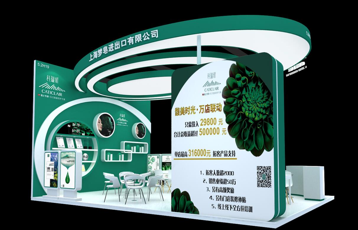 巧妙的運(yùn)用綠色,突出品牌和產(chǎn)品的展示,使整個(gè)展位高檔大氣
