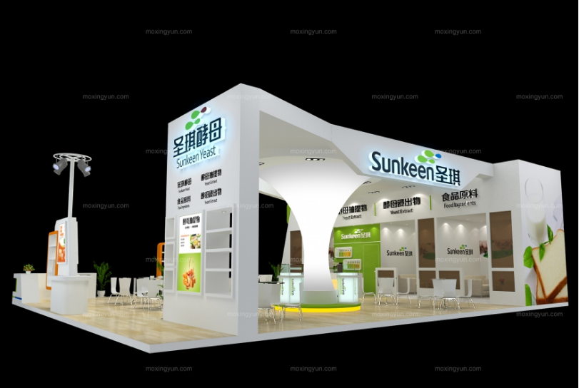 巧妙的運(yùn)用白色作主色調(diào)搭配黃色,著重突出品牌和產(chǎn)品的展示,使整個(gè)展位明亮又時(shí)尚。