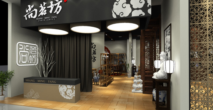 契合尚茗的品牌形象采用古典的造型突出品牌,再搭配燈具燈光的效果,襯托出展位的古典文化和產(chǎn)品交相呼應(yīng)。