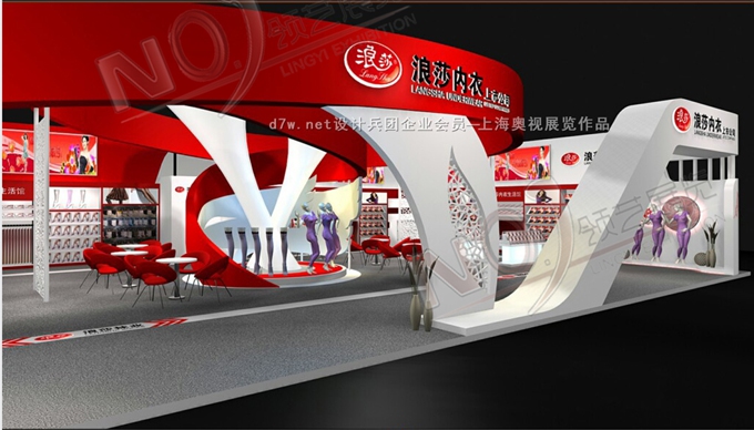 契合的浪莎襪業(yè)品牌形象和產(chǎn)品特性,采用矩形結(jié)構(gòu),再搭配燈具燈光的效果,襯托出展位浪漫溫馨的氛圍,突出一種青春、活力的時尚品味。