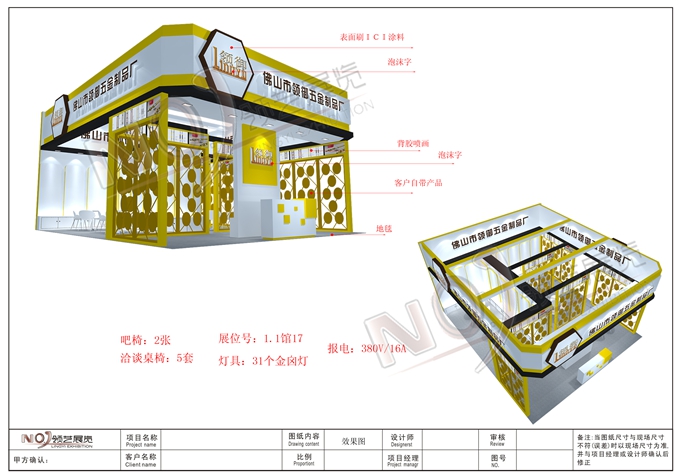 契合領(lǐng)御五金的品牌形象和產(chǎn)品特性,采用矩形結(jié)構(gòu),再搭配燈具燈光的效果,襯托出展位自由、創(chuàng)新的氛圍,突出一種現(xiàn)代、時(shí)尚的時(shí)尚品味。