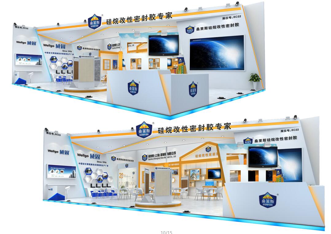 巧妙的運用白色作主色調(diào)搭配橘色,著重突出品牌和產(chǎn)品的展示,使整個展位高檔大氣