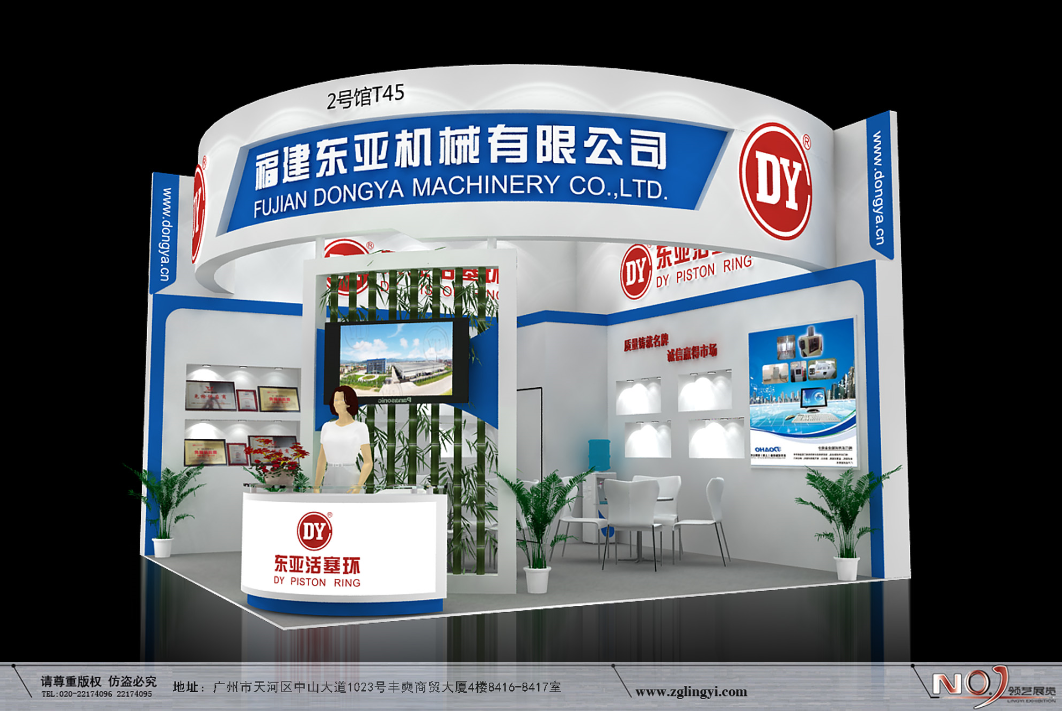 契合東亞活塞環(huán)的品牌形象和產(chǎn)品特性,采用弧形、結(jié)構(gòu),再搭配燈具燈光的效果,襯托出展位簡約、時(shí)尚的氛圍,突出一種現(xiàn)代、簡約的時(shí)尚品味。