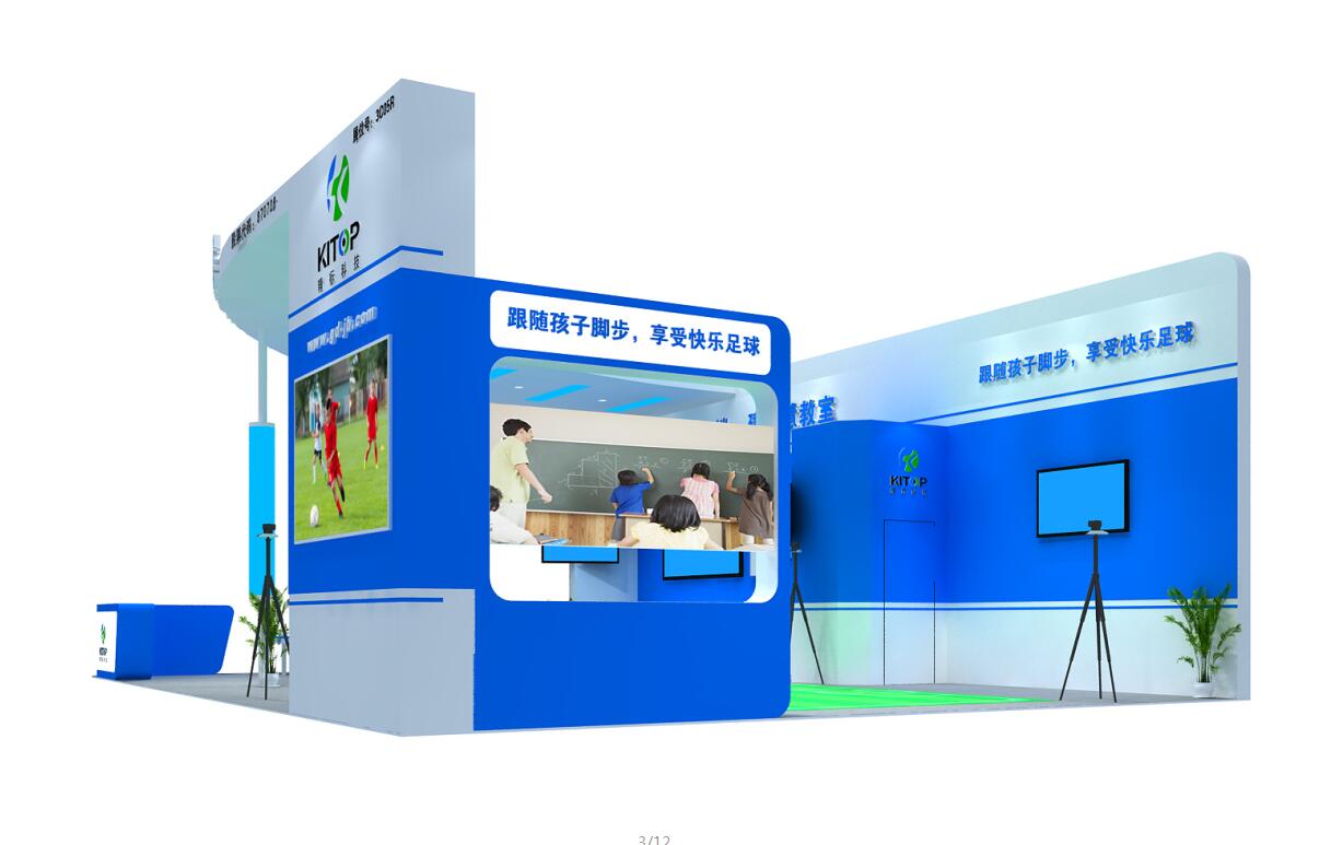 巧妙的運(yùn)用白色搭配藍(lán)色,突出品牌和產(chǎn)品的展示,使整個(gè)展位高檔大氣