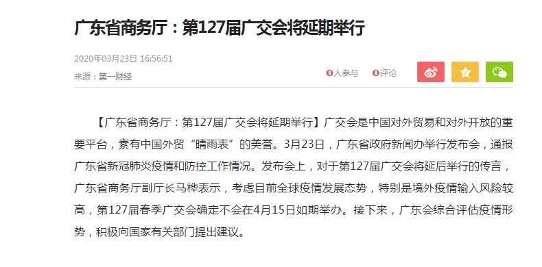 根據(jù)廣交會設(shè)計搭建公司領(lǐng)藝展覽了解到,3月23日,廣東省政府新聞辦舉行發(fā)布會,發(fā)布會上,對于第127屆廣交會將延后舉行的傳言,省商務(wù)廳副廳長馬樺表示,考慮目前全球疫情發(fā)展態(tài)勢,特別是境外疫情輸入風(fēng)險較高,第127屆春季廣交會確定不會在4月15日如期舉辦。接下來,廣東會綜合評估疫情形勢,積極向國家有關(guān)部門提出建議如需廣交會設(shè)計請聯(lián)系領(lǐng)藝展覽,希望我們能在廣交會會搭建上為您添磚加瓦,祝各位朋友收獲多多,滿載而歸!