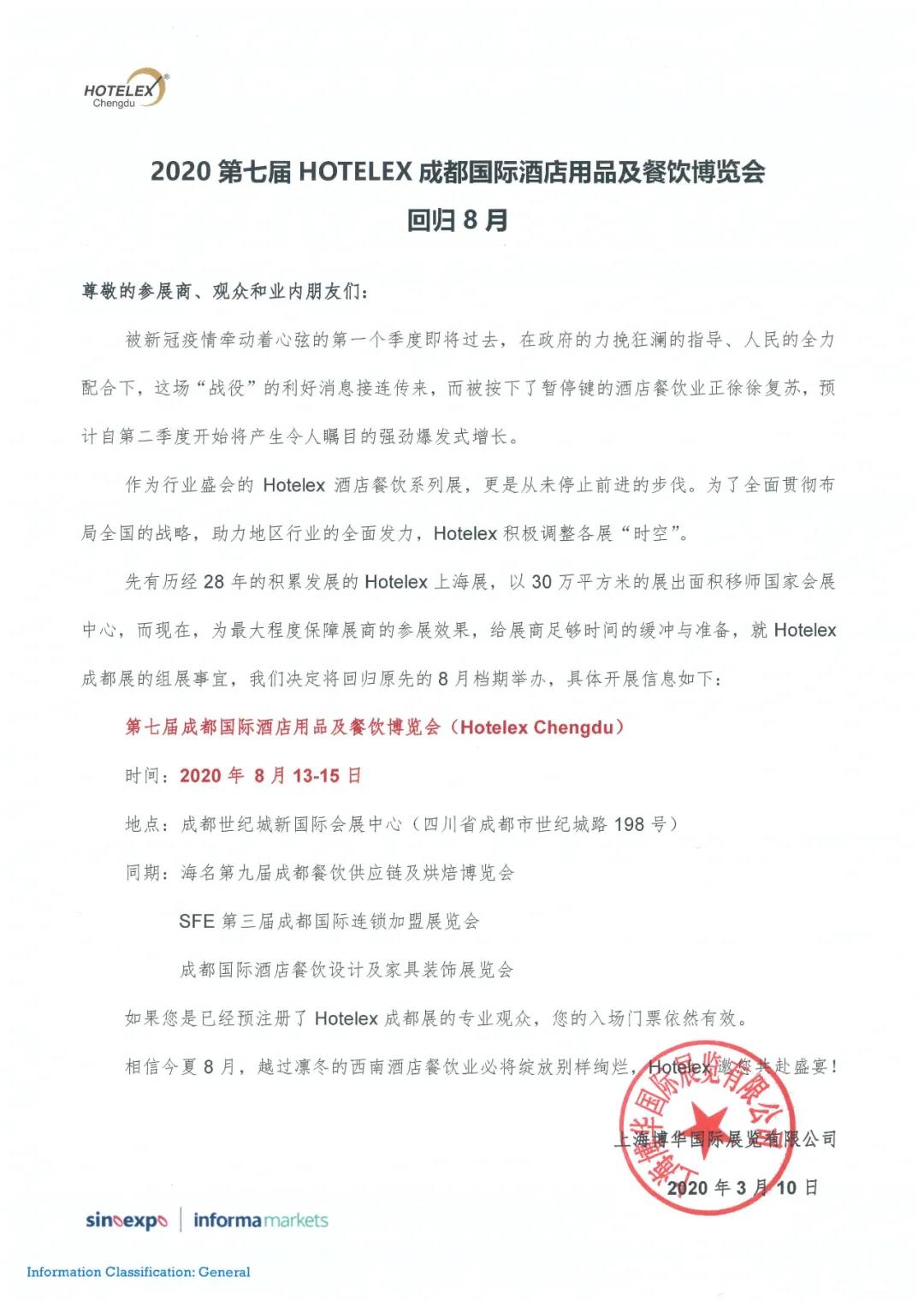根據(jù)餐博會設(shè)計搭建公司領(lǐng)藝展覽了解到,2020 HOTELEX成都,為肩負(fù)起復(fù)興西南酒店餐飲行業(yè)的光榮使命,為最大程度保障展商的參展效果,并營造舒適安全的參展觀展環(huán)境,幾經(jīng)慎重商榷,辦展時間回歸8月,確定為2020年 8月13-15日。如需餐博會設(shè)計請聯(lián)系領(lǐng)藝展覽,希望我們能在餐博會搭建上為您添磚加瓦,祝各位朋友收獲多多,滿載而歸!