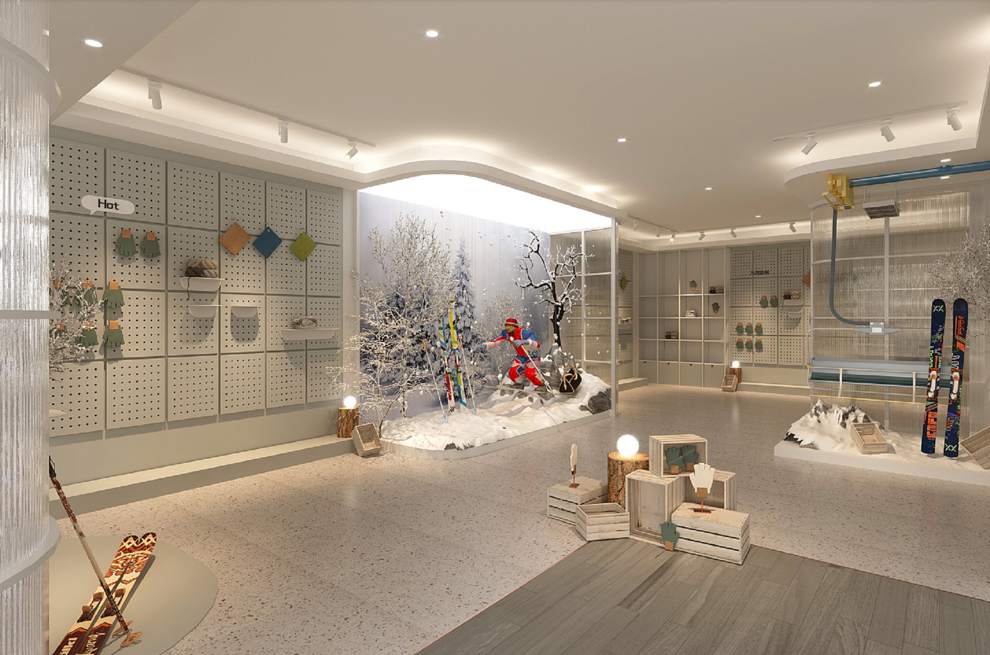 契合雪花秀的品牌形象和產(chǎn)品特性,采用開放式結(jié)構(gòu)進行合理的分區(qū),再搭配燈具燈光的效果,襯托出展廳大氣、豪華的氛圍,突出一種簡約、時尚的品味。