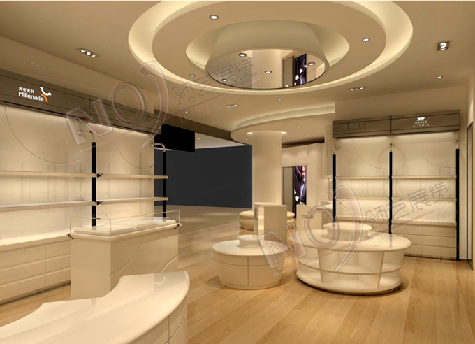 契合的美瓏美利品牌形象和產(chǎn)品特性,采用弧形、矩形結(jié)構(gòu),再搭配燈具燈光的效果,襯托出展位高端、時尚的氛圍,突出一種現(xiàn)代、歐美的時尚品味。