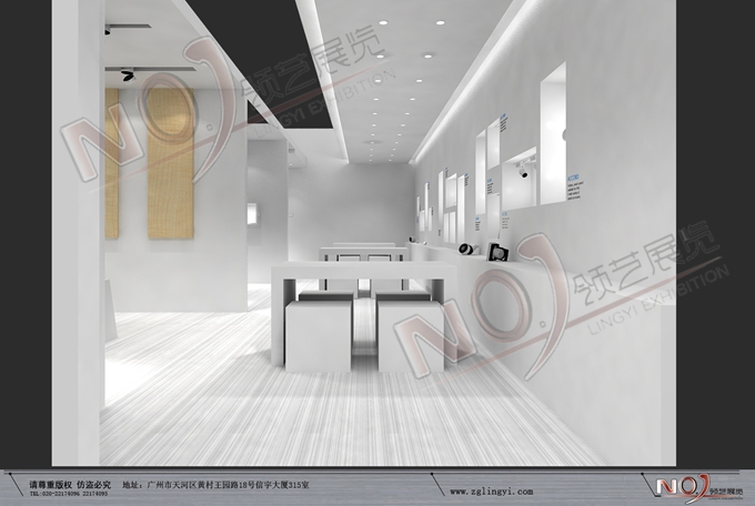 巧妙的運(yùn)用白色作主色調(diào),著重突出品牌和產(chǎn)品的展示,使整個(gè)展位簡約又大方。
