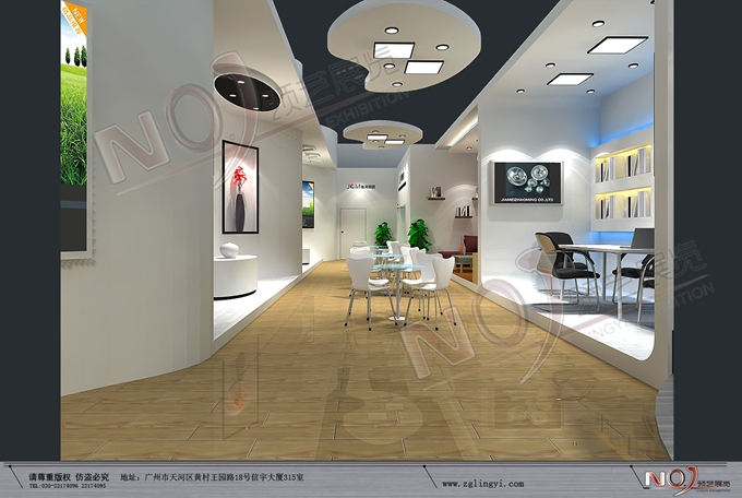 契合嘉美的品牌形象和產(chǎn)品特性,采用弧形、矩形結(jié)構(gòu),再搭配燈具燈光的效果,襯托出展位時(shí)尚、簡(jiǎn)約的氛圍,突出一種現(xiàn)代、活力的時(shí)尚品味。