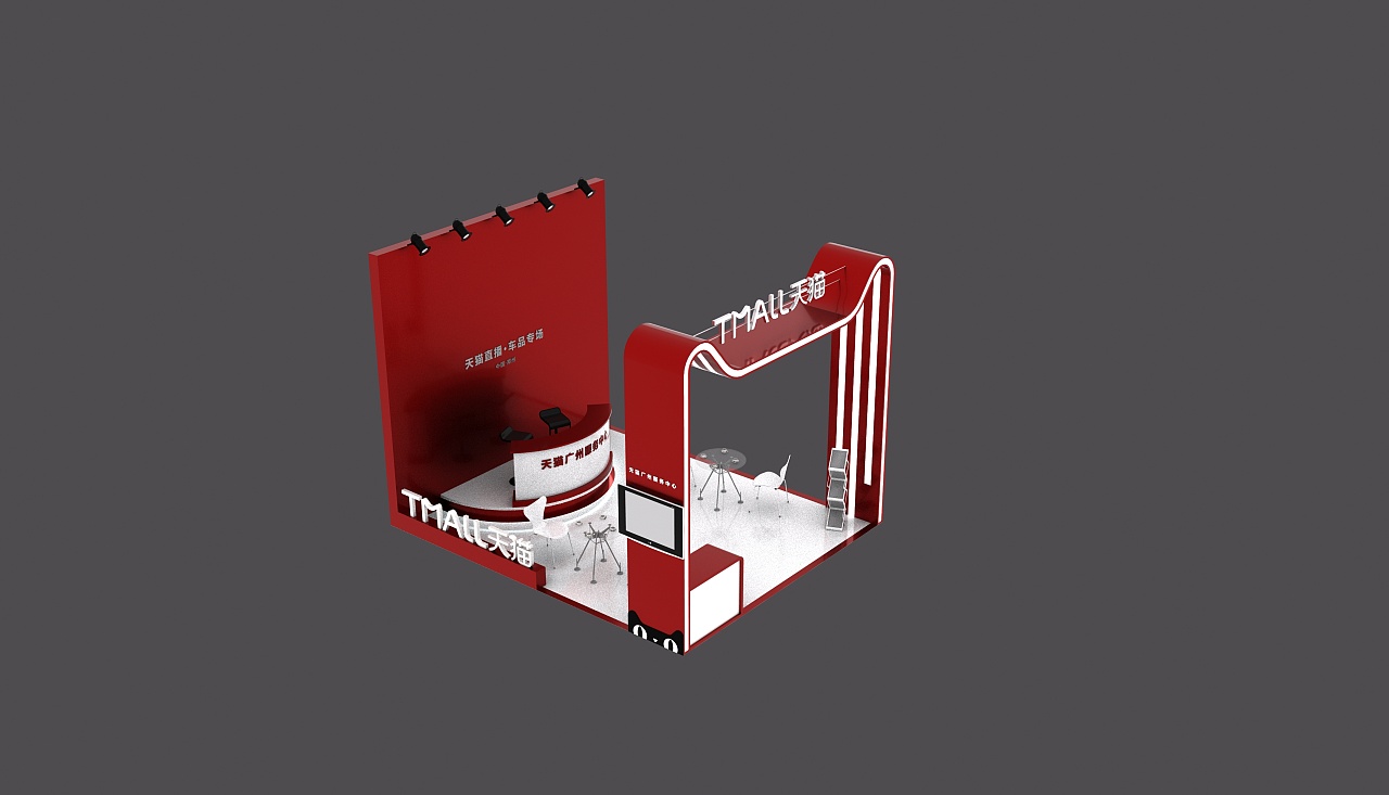 契合天貓的品牌形象和產(chǎn)品特性,采用開放式結(jié)構(gòu)進(jìn)行合理的分區(qū),再搭配燈具燈光的效果,襯托出展廳大氣、豪華的氛圍,突出一種簡(jiǎn)約、時(shí)尚的品味。